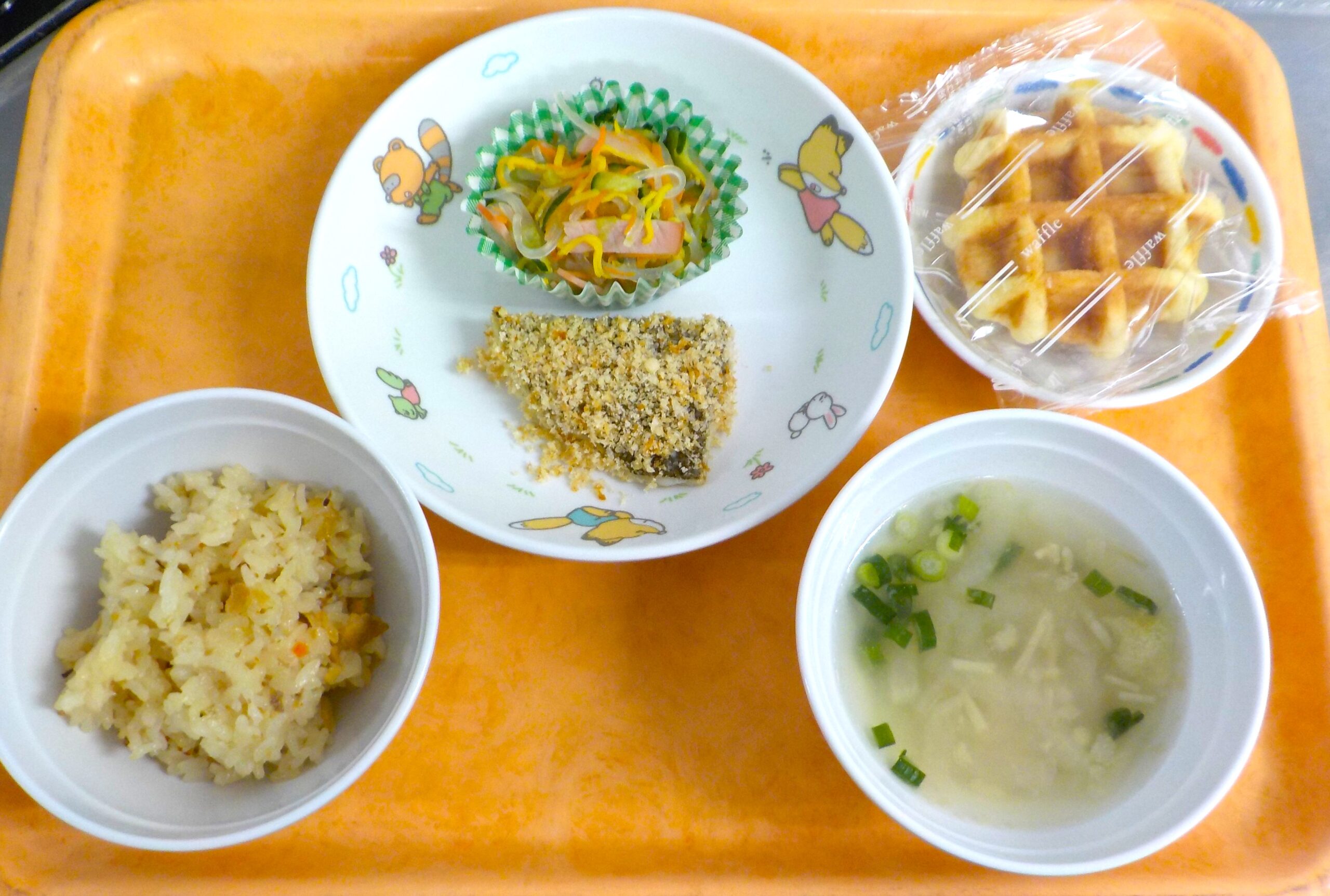 News & Topics Top News & Topics 1月26日(月)の給食 ★ 今日のメニュー ★ 炊き込みご飯、カレイのチーズ焼き、 春雨の酢の物、みそ汁 おやつはワッフルです。 今日も美味しく仕上がりました♪ 2026.01.26 未分類