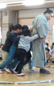 お兄ちゃんお姉ちゃんがお相撲に挑戦です。