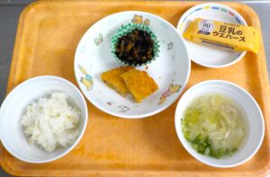 News & Topics Top News & Topics 2月19日(木)の給食 ★ 今日のメニュー ★ 麦ごはん、コロッケ、ひじきの炒り煮、みそ汁 おやつは豆乳ウエハースです。 今日も美味しく仕上がりました♪ 2026.02.19 本日の給食