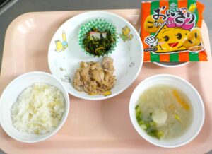 News & Topics Top News & Topics 4月20日(月)の給食 ★ 今日のメニュー ★ 麦ごはん、豚肉の生姜焼き、 ほうれん草とかまぼこの和え物、みそ汁 おやつはおにぎりせんべいです。 今日も美味しく仕上がりました♪ 2026.04.20 本日の給食